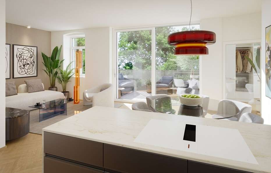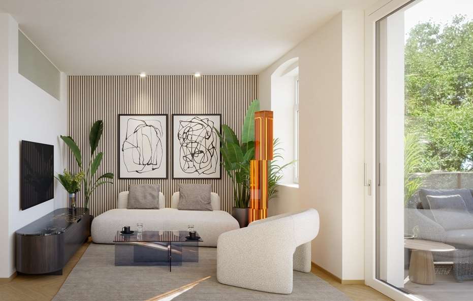 Diese moderne 3-Zimmer Wohnung im ersten Obergeschoss erstreckt sich auf 64 m² Wohnfläche und überzeugt mit hochwertigem Wohnkomfort sowie durchdachter Raumplanung. Der an die beiden Schlafzimmer (jeweils über 12 m² groß) angrenzende Wohn-Essbereich erhält durch den edlen Fischgrätparkett aus österreichischer Eiche und die charaktervolle Sichtziegelwand ein besonderes Flair. Ein weiteres Highlight ist der südseitige Balkon mit 4,73 m², der sonnige Freiräume bietet. Das Badezimmer, ausgekleidet mit hochwertigem Feinsteinzeug, ist mit Sanitärkeramik der Marke Laufen sowie einer modernen Dusche ausgestattet und verbindet Funktionalität mit stilvollem Design. Praktischen Stauraum bietet ein eigenes Kellerabteil, dass der Wohnung zugeteilt ist – ideal zur Aufbewahrung von persönlichen Gegenständen.