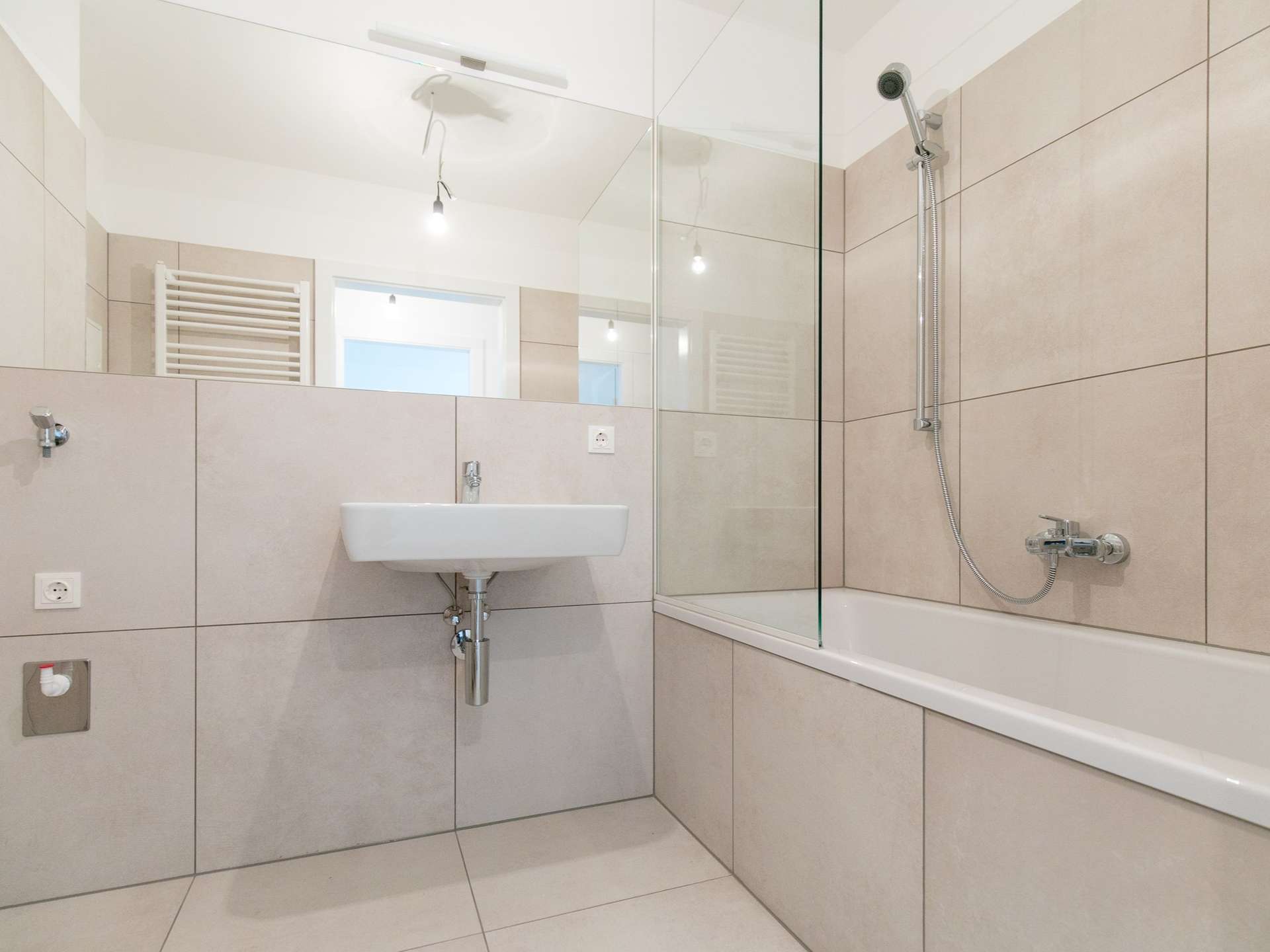 - Design-Badezimmer mit Badewanne & Waschmaschinenanschluss