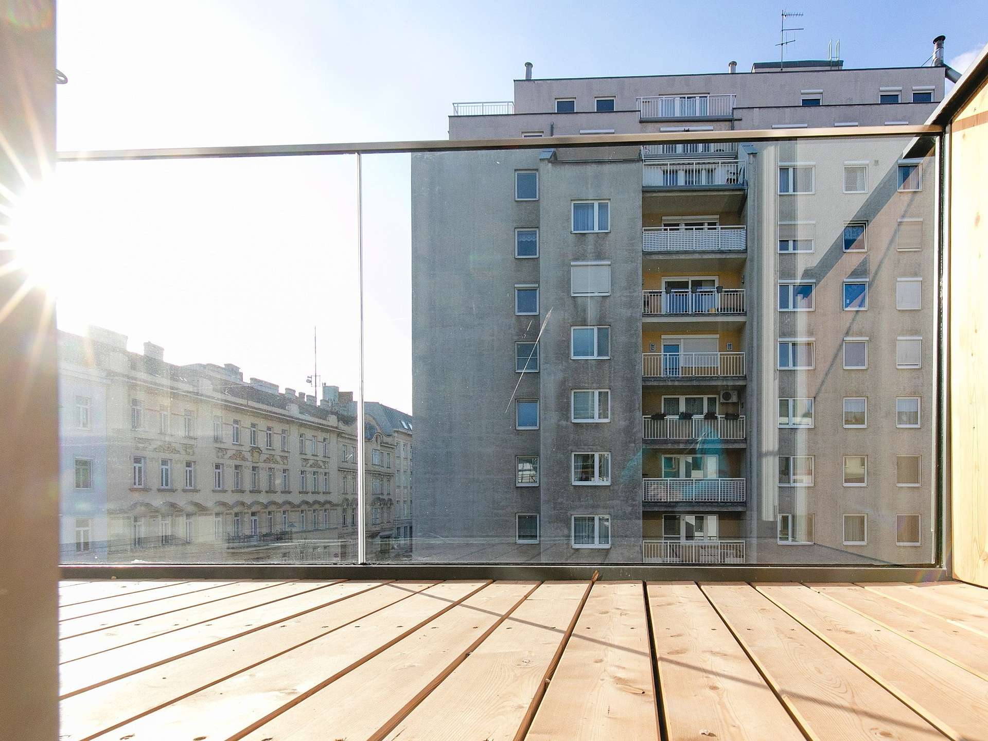 - Balkon mit Lärchendielenboden
