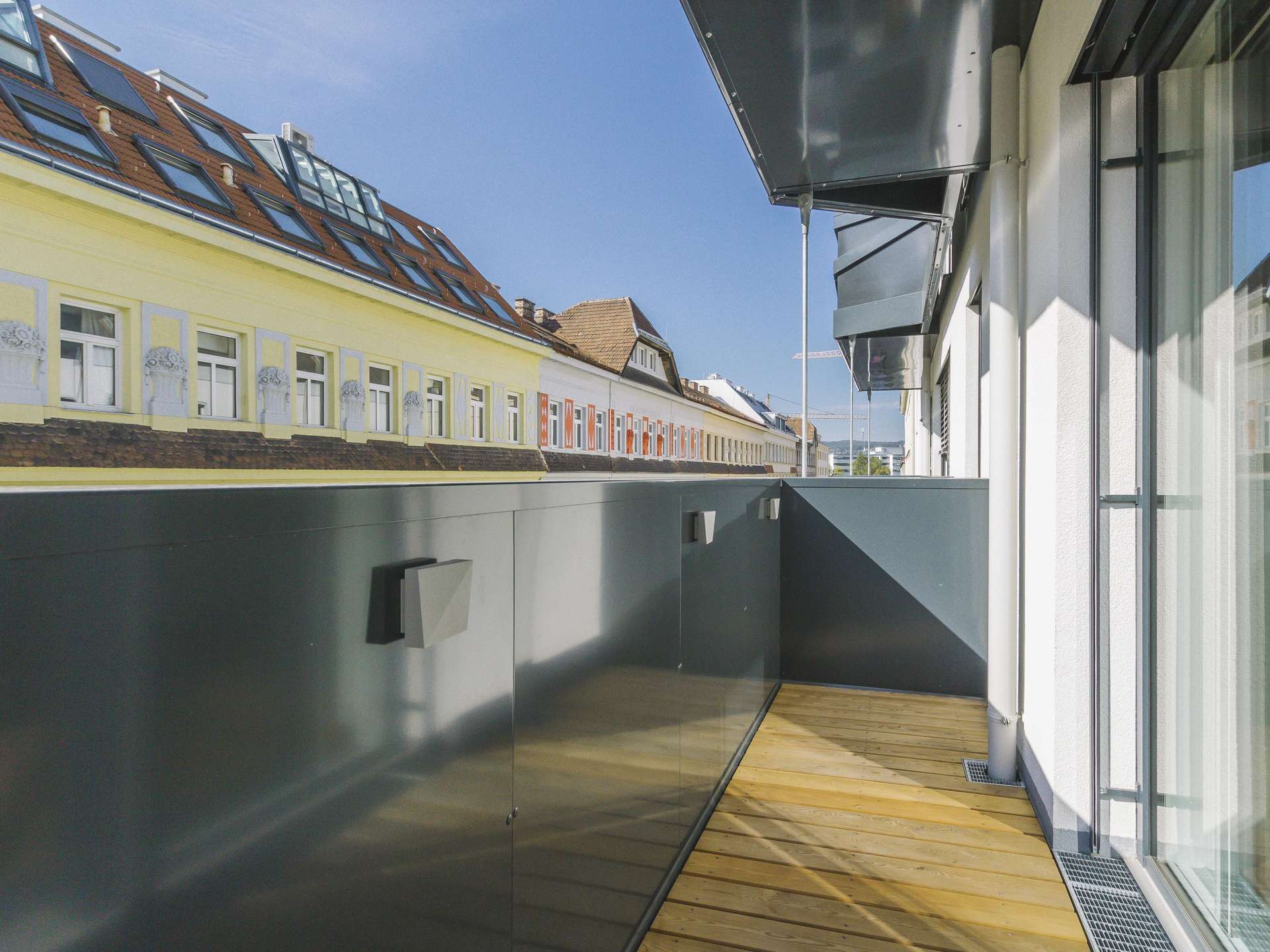 - Balkon mit Lärchendielenboden Richtung Tautenhayngasse