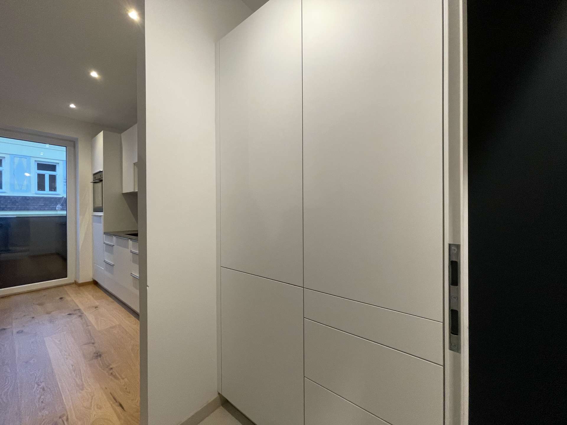 Sichtbetonwände verstärken die Loftpersönlichkeit des Hauses, welches in moderne 2-, 3- und 4-Zimmerwohnungen zwischen 44 und 116 m² mit Eichenparkett, Fernwärmeheizung, Freiflächen und straßenseitiger Außenbeschattung umgebaut wurde. Die Citydomizile wirken dank perfektem Grundriss und moderner Ausstattung großzügig, smart und modern.