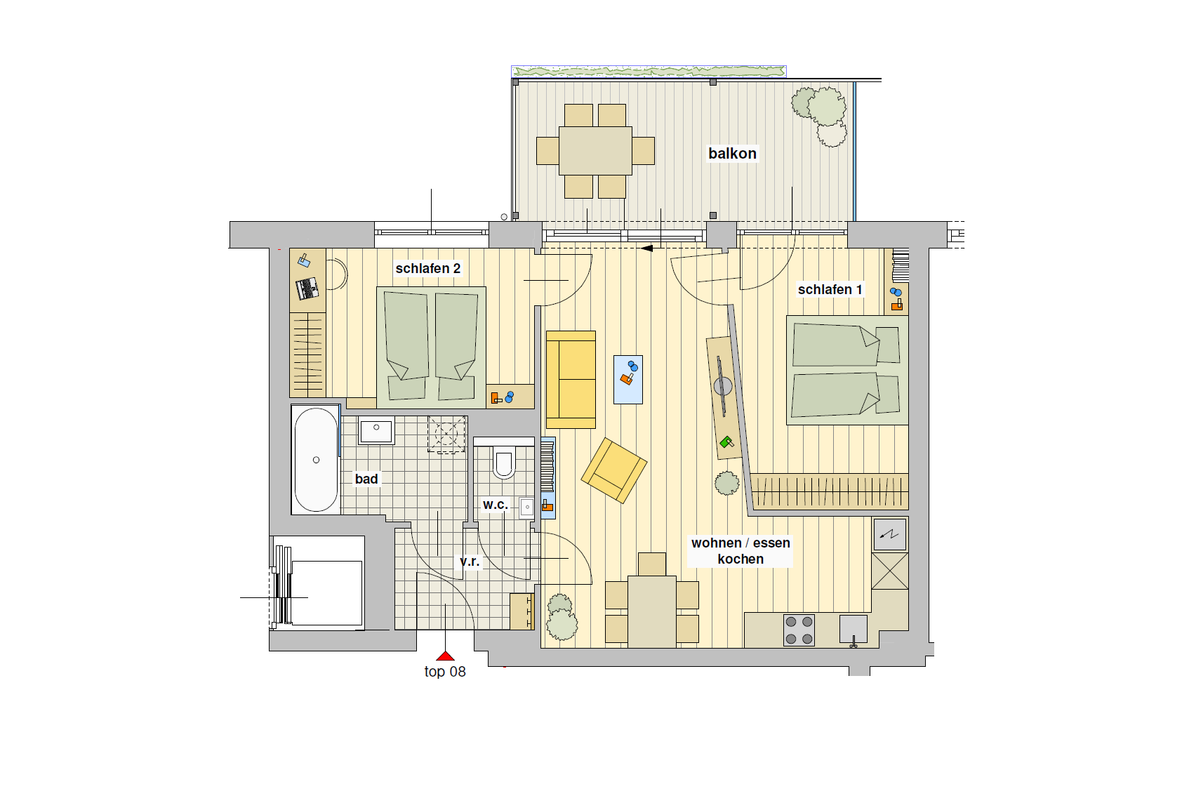 | Immobilie | Etage | Top | Wohnfläche | Zimmer | Freiflächen | Kaufpreis | Verfügbarkeit |