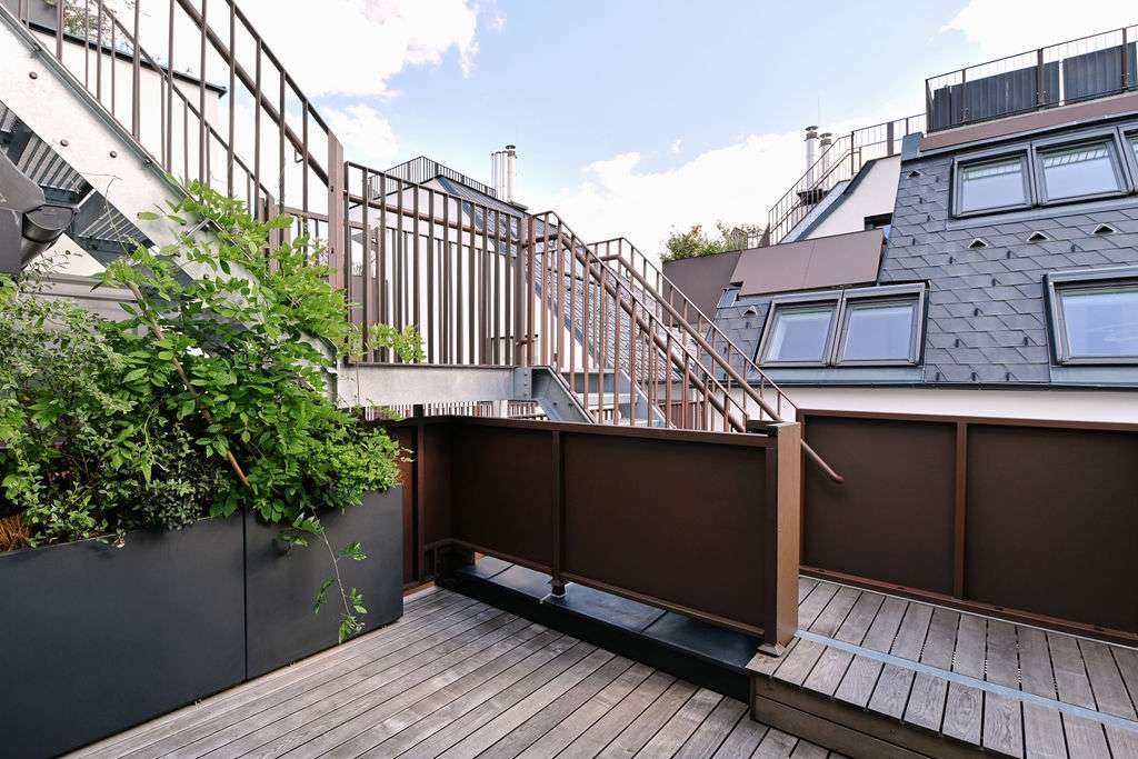 • Dachterrasse (27,30 m²) mit Weinbergpanorama – privater Außenraum über den Dächern Sieverings