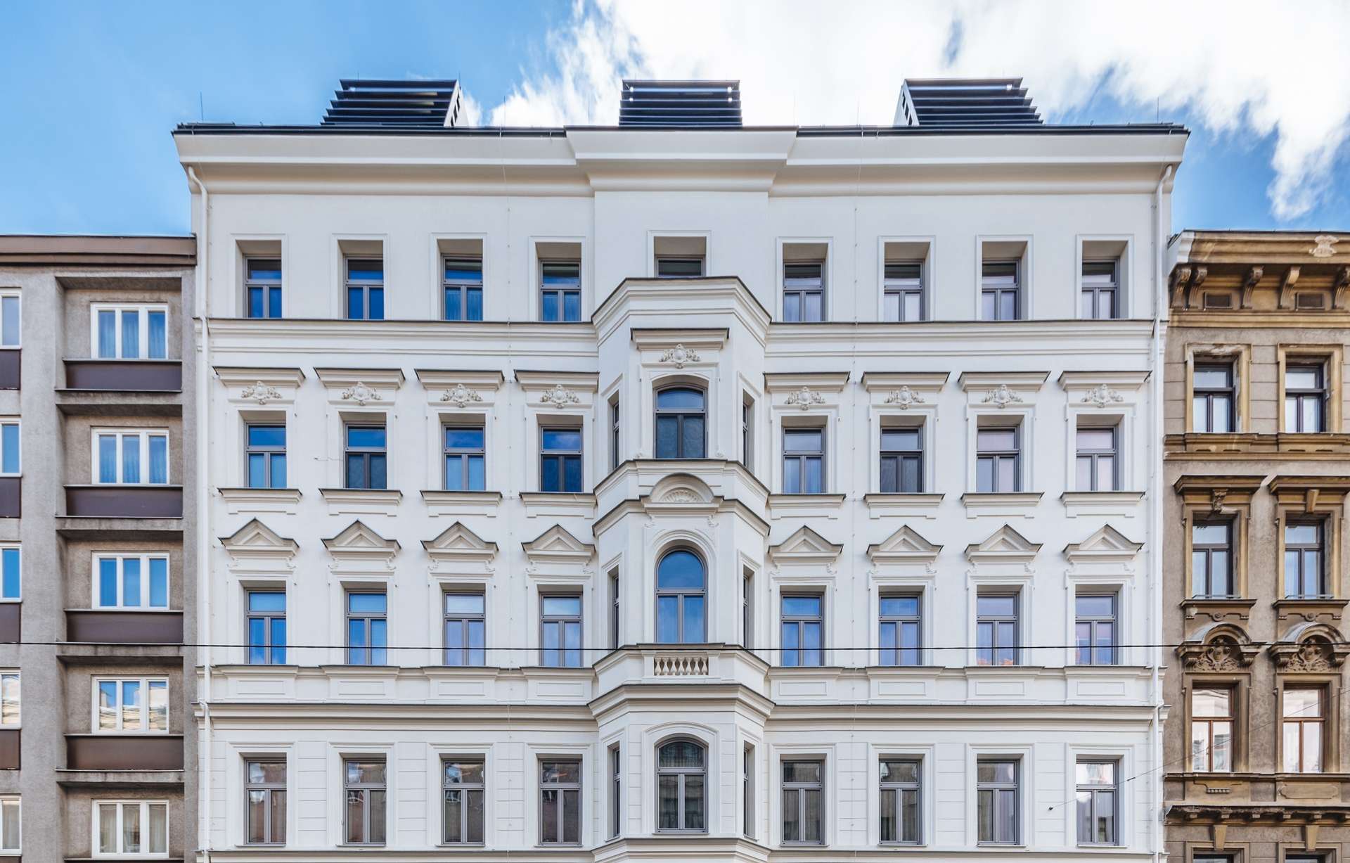 Klassische, helle Farben kombiniert mit liebevoller, detailgetreuer Restaurierung geben dem um 1900 erbauten Gründerzeithaus seinen speziellen, feudalen Charakter wieder zurück. Der zur Gänze aus Glas gebaute Panoramalift gibt dem Stiegenhaus einen zurückhaltenden, neuen Akzent. Während die Terrassenmaisonetten im Loftcharakter mit freigelegten Ziegelwänden geerdet wurden, schweben die Dachmaisonetten regelrecht durch die Farb- und Formgestaltung und den umfassenden Weitblick.