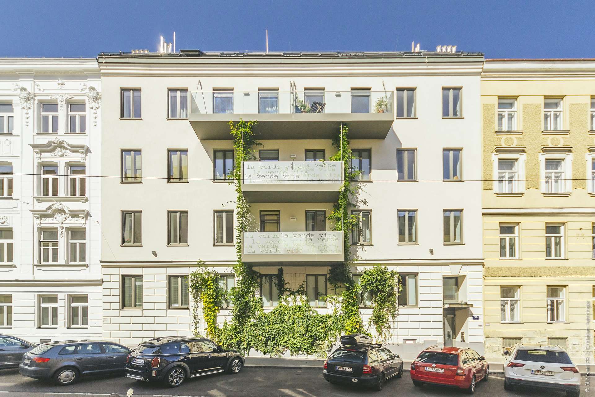 Das Objekt "La Verde Vita" in der Römergasse 59 in Wien Ottakring liegt am Fuße des Wilhelminenberges in einer ruhigen Einbahnstraße. Nicht nur das süße (dolce), sondern auch das grüne (verde) Leben genießen die Bewohner hier am Rande des Wienerwaldes und doch im Herzen Wiens. Der bestehende vierstöckige Altbau wurde durchgreifend saniert (Hof- und Straßentrakt) und um zwei neue Geschoße inkl. Dachterrassen sowie einen Aufzug erweitert. Der Projektname selbst spiegelt sich im begrünten Innenhof, den charmanten Eigengärten, der vertikalen Begrünung sowie den extensiv begrünten Dächern wider.